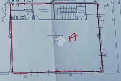 L'immobile è così distribuito: tramite una rampa di scale si accede al primo piano composto da ufficio open space di circa 150 mq, ripostiglio, saletta d'attesa e due bagni.