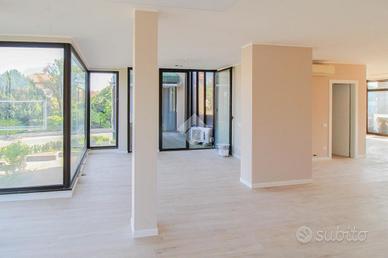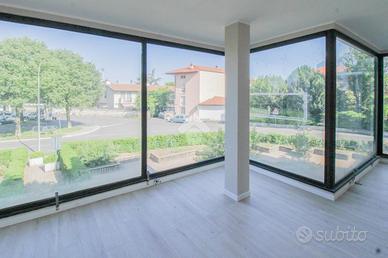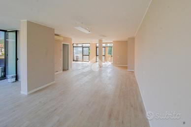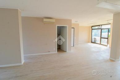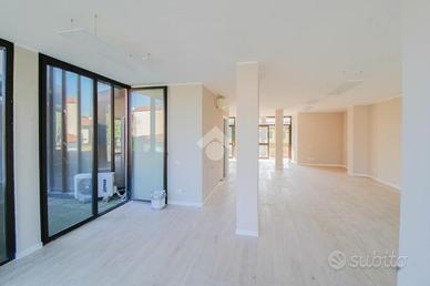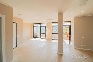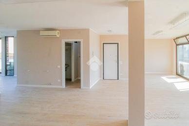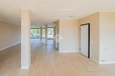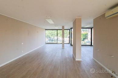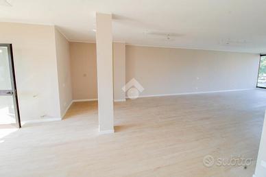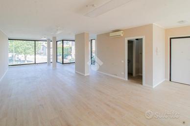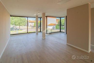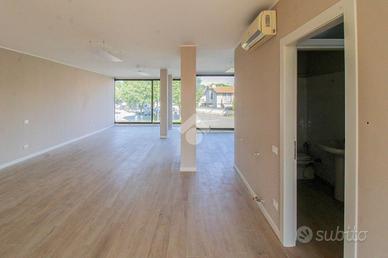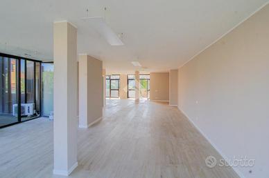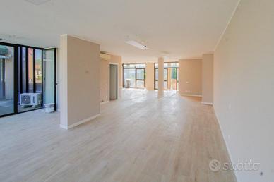 Il locale è attualmente openspace ed è particolarmente luminoso per la presenza di ampie vetrate poste su due lati.