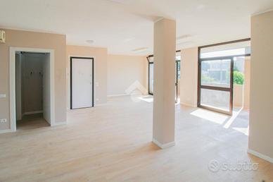 Proponiamo in vendita un ufficio di circa 100 metri quadrati situato al piano primo di un complesso commerciale/residenziale di quattro piani.