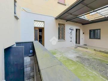 L'ufficio è dotato di predisposizione per gli impianti elettrico, di illuminazione e di riscaldamento, oltre alla presenza della canna fumaria. Completano la proprietà tre servizi igienici a norma disabili e un'area esterna esclusiva di circa 65metri quadrati, situata sul retro dell'immobile.