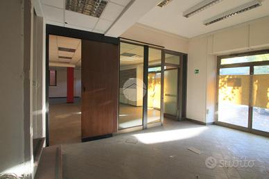 Il piano primo è attualmente composto da 3 uffici realizzati con pareti mobili, 2 servizi igienici ed un ulteriore spazio ad uso ripostiglio.