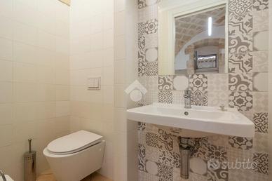 La distribuzione interna è stata studiata con attenzione per coniugare estetica e funzionalità: oltre ai tre vani principali, troviamo un comodo ripostiglio finestrato, ideale come archivio e due bagni ampi e finemente rifiniti, dotati di ogni comfort. Gli interventi di ristrutturazione hanno valorizzato gli elementi originali dell'immobile, combinandoli con soluzioni moderne e materiali di qualità.