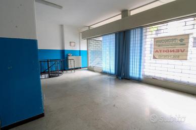 L'ufficio misura circa 80 metri quadrati ed è situato al piano terra di una palazzina che si sviluppa su quattro livelli. La soluzione è attualmente divisa in due locali ed è dotata di un servizio igienico privato. L'ambiente risulta particolarmente luminoso grazie a tre grandi vetrine. L'immobile è dotato di impianto di riscaldamento, impianto elettrico e di illuminazione. La struttura è cablata e presenta inoltre la saracinesca manuale. Al piano seminterrato, raggiungibile tramite una scala a chiocciola, troviamo ulteriori 50 metri quadrati adibiti a magazzino.