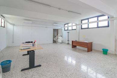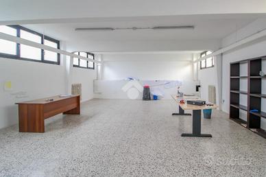 Proponiamo in locazione un ufficio di circa 85 metri quadrati, situato al piano seminterrato di una palazzina composta da soli due livelli.