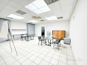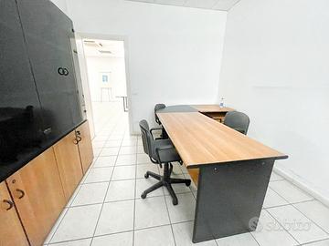 L'ufficio ha una superficie di 100 mq e si compone di una grande stanza all'ingresso, di ulteriori due stanze separate e del bagno.