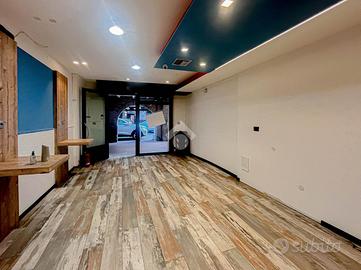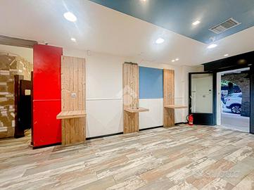 La soluzione proposta in vendita dispone di una superficie calpestabile di circa 60 metri quadrati, ed è situata al piano terra di una palazzina strutturata su tre piani. Internamente, l'immobile si presenta come un ampio open space reso particolarmente luminoso grazie alla presenza di una vetrina con affaccio esterno. Il locale è dotato dell'impianto elettrico, di riscaldamento, di condizionamento e di illuminazione. A completare la soluzione è la presenza di due servizi igienici privati.