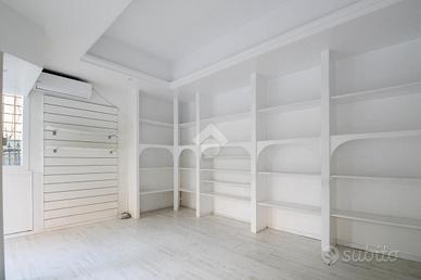 La struttura proposta in locazione dispone di una superficie calpestabile di circa 30 metri quadrati, ed è situata al piano terra di una palazzina sviluppata su tre piani. Internamente, l'immobile si presenta come un ampio open space reso particolarmente luminoso grazie alla presenza di due vetrine con affaccio esterno. Il locale è dotato dell'impianto elettrico, di riscaldamento, di condizionamento e di illuminazione. A completare la soluzione è la presenza di un servizio igienico privato.