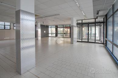 La struttura proposta in locazione dispone di una superficie calpestabile di circa 700 metri quadrati, ed è situata al piano terra di una palazzina sviluppata su due livelli. Internamente, l'immobile è suddiviso in due stanze rese particolarmente luminose grazie alla presenza di dieci vetrine con affaccio esterno. Il locale è dotato dell'impianto elettrico, di illuminazione, di riscaldamento, di condizionamento e dell'impianto antincendio. A completare la soluzione è la presenza di tre servizi igienici privati.