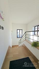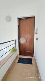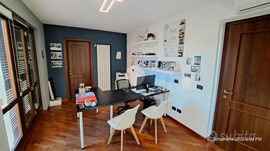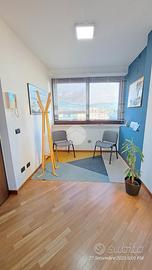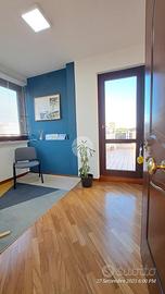 Il portoncino blindato affaccia direttamente sul una zona adibita a sala d'attesa. Da questo ambiente è possibile accedere sia alla stanza adibita ad ufficio personale oppure al terrazzo.