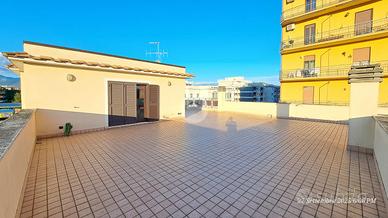 Il terrazzo è caratterizzato da una metratura importante, ed è arricchito dall'affaccio con panoramica a 360°. Affaccio diretto su Via Marco Tullio Cicerone, il Grattacielo Edera, scorcio sui Monti Lepini ed i Monti Ernici.