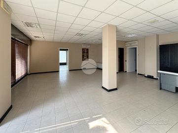 A Gussago, su strada ad alto scorrimento automobilistico, proponiamo in affitto negozio/ufficio di circa 130 mq, posto al piano terra, suddiviso in 3 locali con doppio sevizio igienico.