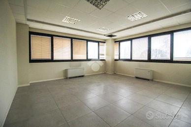 L'ufficio misura circa 440 metri quadrati e si trova al secondo piano di una struttura direzionale che si sviluppa su tre livelli. La struttura è attualmente divisa in sette locali ed è dotata di sei servizi igienici privati a norma disabili. La soluzione controsoffittata è servita dall'impianto di riscaldamento e condizionamento, dall'impianto elettrico e quello di illuminazione. L'ambiente risulta ben illuminato grazie alla presenza di ampie finestre. L'immobile, è munito di un'uscita di emergenza, delle luci di emergenza, e della porta tagliafuoco. Inoltre, è cablato e possiede la connessione ad Internet.