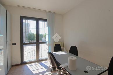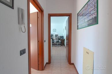 L'ufficio proposto misura circa 300 metri quadri ed è situato al primo piano di una struttura di due livelli raggiungibile tramite comode scale, con annessa area esterna di 150 metri quadrati. Attualmente la soluzione si presenta divisa in più locali, a cui si aggiunge un grande open-space. Il locale risulta essere alto 2,80 metri e possedere parquet, è completo di tre servizi igienici privati, internet a banda larga e risulta essere cablato. La struttura è servita dagli impianti di riscaldamento e condizionamento e dai sistemi elettrico (con pannelli solari da 19 kw) e di illuminazione.