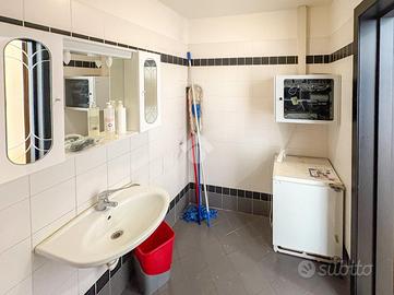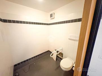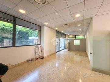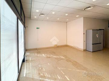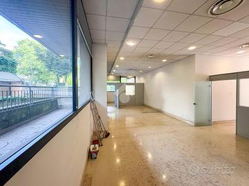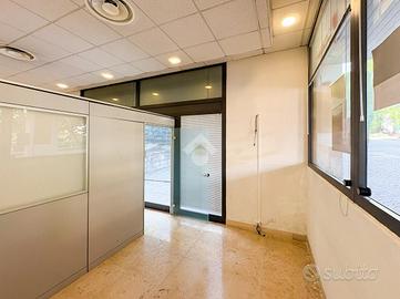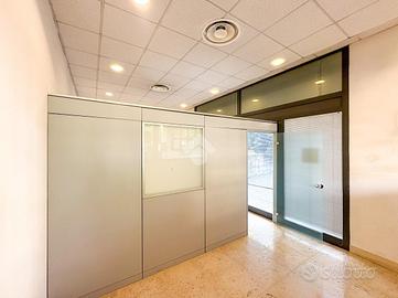 L'ufficio misura 140 metri quadrati e ha un'altezza di 3,90 metri. La soluzione divisa in due locali ed è dotata di un servizio igienico a norma disabili. L'ambiente risulta particolarmente luminoso grazie a tre grandi vetrine. Il locale possiede l'impianto di riscaldamento e quello di condizionamento, l'impianto elettrico e quello di illuminazione. L'immobile, completamente controsoffittato, gode di doppio ingresso e di una posizione ad angolo.