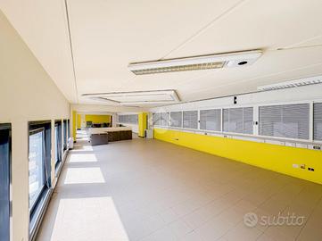 La soluzione ha una superficie che misura circa 180 metri quadrati disposta al piano primo, attualmente è suddiviso in un unico locale a cui si aggiungono due servizi igienici non a norma disabili. Il locale ha un'altezza di circa 2,70 metri ed è caratterizzato da una pavimentazione in piastrelle. L'immobile presenta l'impianto di riscaldamento e di condizionamento autonomi, l'impianto elettrico e di illuminazione. La struttura è cablata e dispone di internet a banda larga.