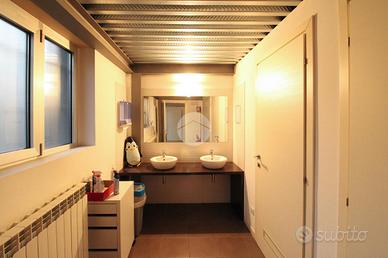 L'immobile misura complessivamente 396 metri quadrati, distribuiti su due livelli di un edificio di due piani, il quale risulta essere a norma per l'accesso disabili. Internamente lo stabile possiede un'altezza massima di 5,50 metri e una minima di 2,40 metri, presenta circa nove locali e ben cinque servizi igienici privati. L'ufficio dispone di riscaldamento e condizionamento (ambedue autonomi), impiantistica elettrica e d'illuminazione, nonché di impianto d'allarme; completa la soluzione un sistema antincendio composto da antincendio a idranti, luci e uscita d'emergenza. L'immobile presenta internet a banda larda e risulta essere cablato; grazie alla recente ristrutturazione avvenuta nell'anno 2025 l'ufficio si presenta in un ottimo stato d'uso.