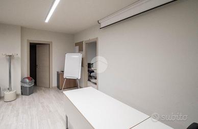 L'immobile in vendita ha una metratura complessiva di circa 80 metri quadrati con annesso un servizio igienico privato a norma disabili. L'ufficio, avente altezza 2.58 metri, gode di riscaldamento e condizionamento (ambedue centralizzati), nonché d'impiantistica elettrica (potenza 4 kW) e d'illuminazione. La struttura, a norma per l'accesso disabili, è dotata di due ampie vetrine le quali donano maggiore luminosità all'intero ambiente; completa la soluzione l'antincendio a idranti. La proprietà risulta essere cablata.