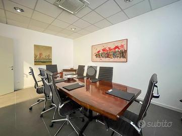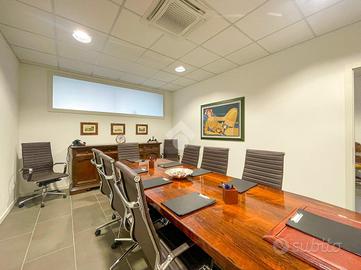 Superficie: L'ufficio ha una superifice complessiva di 95mq ed è posto al piano secondo. Esso gode di un ampio ingresso e ospita sala riunioni, ufficio privato e servizio igienico dotato di antibagno.