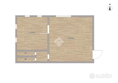 L'immobile si presenta come una soluzione professionale già pronta all'uso, curata e funzionale, con ambienti ben distribuiti e pensati per lavorare in modo comodo ed efficiente. Gli spazi, con un'altezza interna di circa 3 metri e controsoffitto, risultano ariosi e facilmente personalizzabili. L'accesso è agevolato da un doppio ingresso all'edificio e da una porta blindata che garantisce sicurezza e riservatezza. Internamente l'ufficio è organizzato in due locali separati da pareti, ideali per creare aree operative distinte o uno spazio direzionale affiancato da una zona collaboratori, ed è dotato di due servizi igienici, un plus non scontato per questa tipologia di immobile.