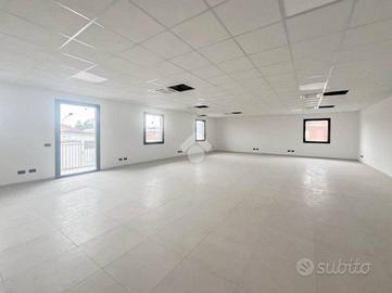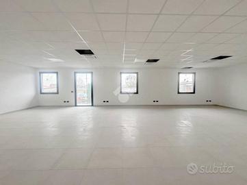 La soluzione proposta in locazione dispone di una superficie di circa 140 metri quadrati, sviluppati interamente su di un unico piano primo. Lo spazio si presenta come un grande open space luminoso, completo di una vetrina e di numerose finestre apribili. L'immobile è completo degli impianti elettrico, di illuminazione e dei sistemi di riscaldamento e condizionamento ad aria. A completare la soluzione è la presenza di un servizio igienico privato.