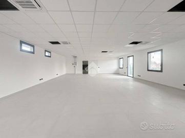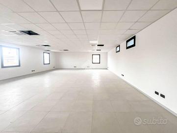 La soluzione proposta in locazione dispone di una superficie di circa 280 metri quadrati, sviluppati interamente su di un unico piano primo. Lo spazio si presenta diviso in due grandi open space speculari e molto luminosi grazie alla presenza di due vetrine e di numerose finestre apribili. L'immobile è completo degli impianti elettrico, di illuminazione, di riscaldamento e condizionamento. A completare la struttura è la presenza di due servizi igienici privati.