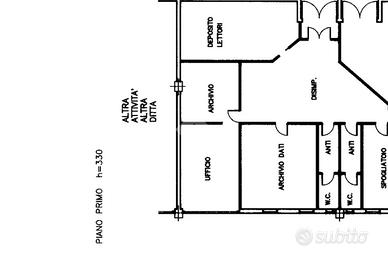 Lo stabile è del 1990, la metratura dell' ufficio è di 170 mq, si presentano in ottimo stato internamente e completi di arredamento. L'immobile è suddiviso in vari vani ad uso ufficio e archivio con montacarichi condominiale.