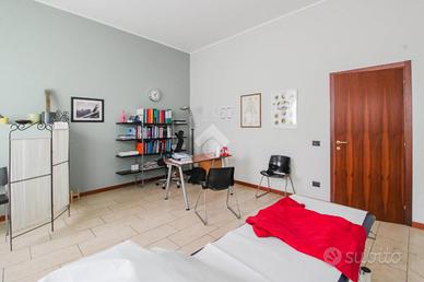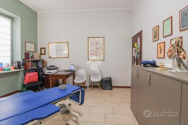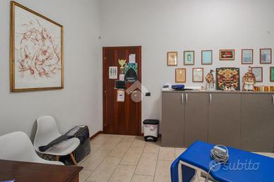 Proponiamo in locazione un ufficio di circa 100 metri quadrati, disposto al piano terra di una palazzina di due livelli.