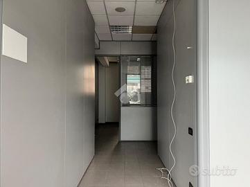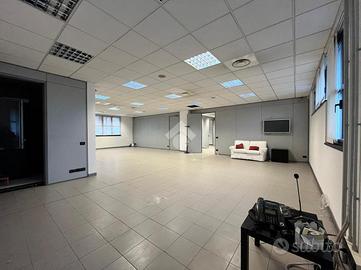 La palazzina cielo terra é disposta su tre livelli ed è così suddivisa: piano terra di mq. 220ca. composto da open space suddiviso con pareti mobili e servizio; piano primo di ulteriori mq. 220ca., open space suddiviso con pareti mobili e doppi servizi; piano seminterrato di mq. 110ca. ad uso magazzino/archivio oltre a due box doppi. Tutti i piani sono collegati da scala interna.
