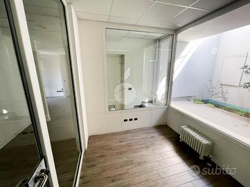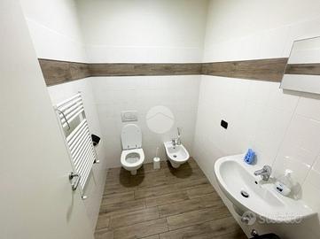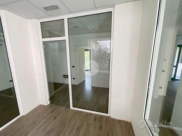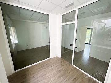 L'ufficio misura 180 metri quadrati ed è situato al primo piano. La soluzione è attualmente dotata di tre servizi igienici, predisposizione per la fibra ottica e impianto di allarme su scale ed esterno. L'ambiente è particolarmente luminoso grazie alla presenza di quattro grandi vetrine. La struttura possiede inoltre l'impianto elettrico, di illuminazione, di riscaldamento e di aria condizionata.