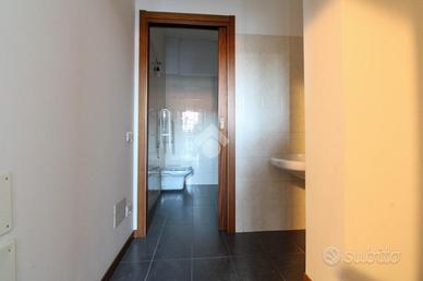 La soluzione dispone di una superficie che misura circa 100 metri quadrati ed è disposta al piano terra di una struttura condominiale. L'ufficio è attualmente suddiviso in sei locali ed è dotato di due servizi igienici privati, dei quali uno provvisto di sanitari a norma per un utilizzo da parte dei disabili. L'immobile presenta installati l'impianto di riscaldamento a radiatori, l'impianto di condizionamento, l'impianto elettrico e quello di illuminazione. L'ambiente è particolarmente luminoso grazie alla presenza di tre grandi vetrine. Presente un piccolo magazzino di circa 20 metri quadrati, raggiungibile tramite una scala a chiocciola.