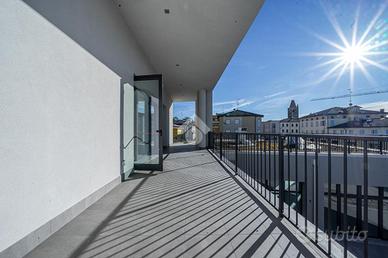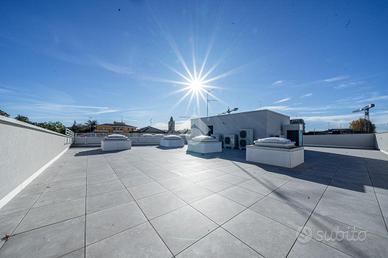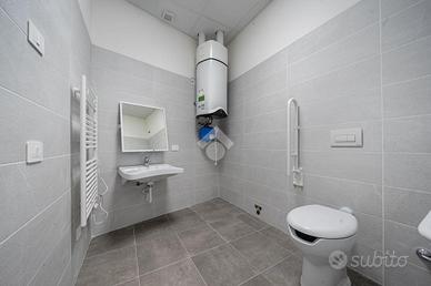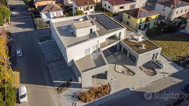 Il fabbricato di cui fa parte l'unità immobiliare è stato demolito e ricostruito post sisma e attualmente è in fase di ultimazione. La ricostruzione ha consentito di innovare le caratteristiche dell'immobile, dotandolo di finiture moderne, che rendono il complesso immediatamente riconoscibile, di un elevato isolamento termico e acustico, nonché di impiantistica completa a norma di ultima generazione; fattori che consentiranno ai futuri utilizzatori degli spazi del fabbricato di beneficiare di un'elevata vivibilità degli ambienti e di un considerevole risparmio sui consumi energetici. L'immobile è dotato di ampie vetrate, che offrono grande luminosità ai locali. L'unità è posta al primo piano del complesso e ha una superficie di 270 mq. circa calpestabili, oltre a terrazzo di 30 mq. circa al piano e ulteriore ampio terrazzo in copertura.