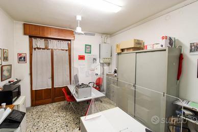 Proponiamo in locazione un ufficio di circa 100 metri quadrati, situato al piano terra, con cantina di ulteriori 20 metri quadrati situata al primo piano interrato dell'edificio.