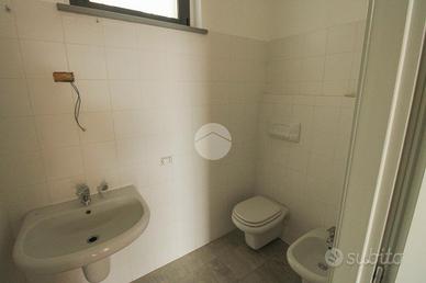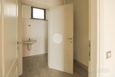 L'ufficio misura circa 50 metri quadrati e si trova al piano terra, con ulteriori 70 metri quadrati ad uso esclusivo di magazzino seminterrato, in una struttura condominiale che si sviluppa su tre livelli. La soluzione è attualmente un open space ed è dotata di un servizio igienico privato ed è munita dell'impianto di riscaldamento e condizionamento ad aria. L'ambiente risulta ben illuminato grazie alla presenza di ampie vetrate. L'immobile è inoltre cablato e possiede la connessione ad Internet. Inoltre ha un box di proprietà di 25 metri quadrati.