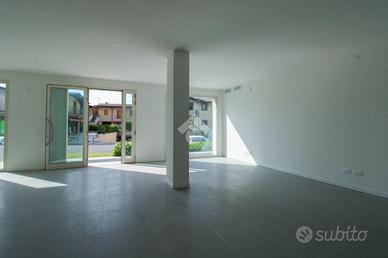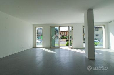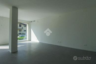 La soluzione proposta in locazione dispone di una superficie di circa 80 metri quadrati che si sviluppa al piano terra in un unico ambiente openspace dotato di un servizio igienico privato. Il locale risulta estremamente luminoso per la presenza di un'ampia vetrina nella quale è inserita inoltre la porta di accesso. L'immobile è provvisto degli impianti elettrico, di illuminazione, di condizionamento e di riscaldamento geotermico.
