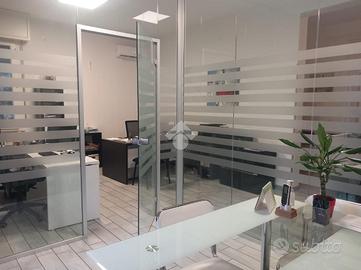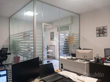 L'immobile si compone di una zona reception attrezzata con postazioni di lavoro, una saletta separata realizzata con parenti in vetro satinato, che garantiscono luminosità e riservatezza, oltre a un bagno privato.
