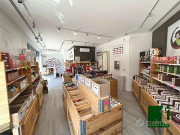 L'immobile disposto su due livelli è composto da locale open space a piano terra, con tre vetrine, disbrigo e bagno, e due magazzini a piano interrato servite da bocche di lupo. Termoautonomo. Dotato di due posti auto privati.