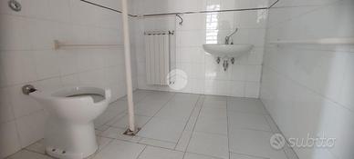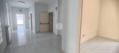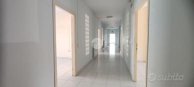 -Il locale è esposto su quattro lati, situato al piano terra di un edificio di soli 2 piani, più il seminterrato. Si compone di ingresso, ampio corridoio con 9 stanze, un ripostiglio, 5 servizi di cui 2 a norma per disabili, e una scala interna che conduce al primo deposito seminterrato di 30 mq circa. Ampia corte antistante ad uso esclusivo del locale di circa 300 mq, e due posti auto riservati nel cortile condominiale;