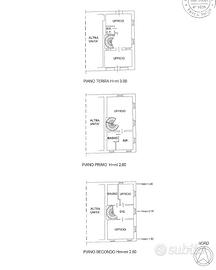 L'immobile è attualmente accatastato come A/10 (ufficio), ma presenta una configurazione interna particolarmente versatile: ai piani secondo e terzo è stata installata una cucina, rendendo possibile la creazione di un ambiente abitativo integrato.
