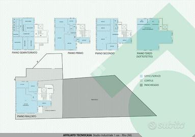 PIANO SEMINTERRATO: di 200 mq diviso in 3 locali magazzino,mensa, sala ricreativa, zona archivio, e servizi igienici più locale caldaia .