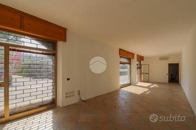 L'ufficio misura 70 metri quadrati ed è situato al piano terra di una palazzina condominiale che si sviluppa su due livelli. La soluzione è attualmente divisa in due locali ed è dotata di un servizio igienico. L'ambiente è particolarmente luminoso grazie alla presenza di tre grandi vetrine. La struttura possiede l'impianto elettrico e l'impianto di illuminazione. L'immobile ha la canna fumaria ed è inoltre cablato.