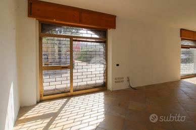 L'ufficio misura 70 metri quadrati ed è situato al piano terra di una palazzina condominiale che si sviluppa su due livelli. La soluzione è attualmente divisa in due locali ed è dotata di un servizio igienico. L'ambiente è particolarmente luminoso grazie alla presenza di tre grandi vetrine.