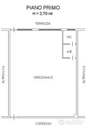 L'immobile è posto al primo piano di una palazzina servita da ascensore e si compone di un ampio open space modulabile, bagno finestrato e un ingresso da portoncino blindato su corridoio comune alle altre unità.