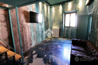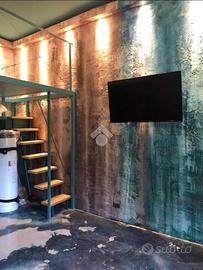 L'ambiente si articola in un unico volume sapientemente ottimizzato grazie alla presenza di un funzionale soppalco, oltre servizio igienico.