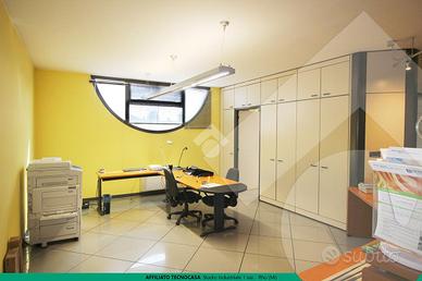 Collegati con scala interna ed eventuale ascensore, troviamo altri UFFICI di 200 mq posti al primo piano e suddivisi in vari locali più una sala riunioni e servizi igienici. Dotati di tutti i principali IMPIANTI: illuminazione, elettrico, telefonico, rete dati per computer e fibra ottica, riscaldamento autonomo e condizionamento a pompa di calore. Pavimento flottante, porte in legno e controsoffitto in gesso.