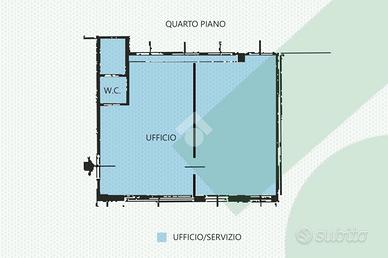 L'UFFICIO, si trova al quarto piano, raggiungibile sia con le scale che con ascensore. La superficie totale è di 50 mq e si divide in due locali. È presente un servizio igienico. Le divisioni interne sono in muratura. Pavimento in granito. Porta blindata. Dotati di tutti i principali IMPIANTI: illuminazione, elettrico, riscaldamento centralizzato e aria condizionata.