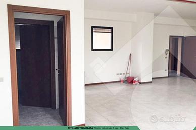 L'ufficio è posto al primo piano e ha una superficie totale è di 80 mq divisa in un open space più un locale con servizio igienico. Pavimentazione in gres porcellanato, porta blindata, finestre in alluminio con doppi vetri.