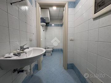L'ufficio si trova al piano terra, dispone di doppio ingresso e doppi servizi con antibagno.