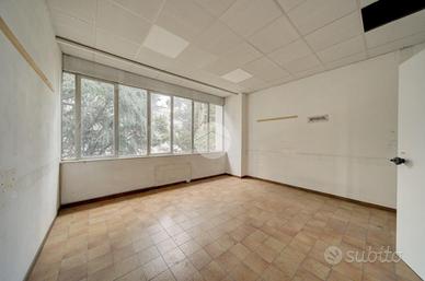 Al P.T.: ingresso, n. 2 uffici, vano scala, antibagno, n. 2 servizi.