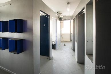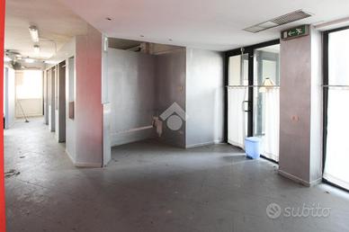 La soluzione immobiliare ha una superfice che misura circa 115 metri quadrati disposti su di un unico livello al piano primo di una struttura che si erige su tre piani: il locale è raggiungibile sia tramite la percorrenza delle scale oppure mediante l'utilizzo di un ascensore. La superficie commerciale è sviluppata in un unico ambiente open-space munito di un proprio servizio igienico dotato dell'antibagno. La struttura risulta ben illuminata grazie alla presenza di ampie finestre apribili che affacciano sul balconcino privato. L'ufficio è dotato dell'impianto di riscaldamento e di condizionamento ad aria e degli impianti elettrico e di illuminazione attivi e funzionanti. La pavimentazione è stata realizzata rivestendo il fondo con mattonelle di ceramica. Le porte di ingresso alla soluzione sono dotate dell'impianto di allarme.