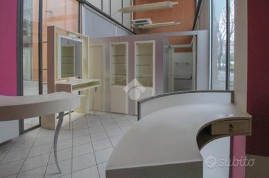 La struttura proposta in vendita è situata al piano terra di un edificio sviluppato su due livelli e dispone di una superficie calpestabile di circa 145 metri quadrati, di cui 70 metri quadrati di soppalco. Internamente, l'immobile si presenta come suddiviso in sette stanze rese particolarmente luminose grazie alla presenza di undici vetrine con affaccio esterno. Il locale è dotato dell'impianto elettrico, di illuminazione, di riscaldamento e di condizionamento. A completare la soluzione è la presenza di tre servizi igienici privati.